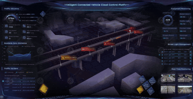 通过图扑软件自研引擎实现的云控可视化平台,能与道路基础设施协同,以智能交通信号灯联动为例,平台可分析路口交通流量,动态调整信号灯时长,合理分配绿灯时间减少车辆等待,提高城市交通运行效率;与此同时,路测设备采集的海量数据传输至云控平台,经强大算法深度分析处理,助力平台精准掌握和智能调控交通状况,让道路更智能,出行更高效。