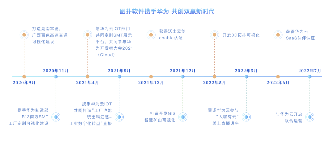 图扑软件与华为云建立深度绑定的联合运营合作,双方共同打造便捷高效稳定的可视化解决方案,为电力、能源、交通、工业、电信、水务、化工等领域赋能可视化能力,让用户能够以更低的成本和更快的速度完成领域内的可视化建设。
