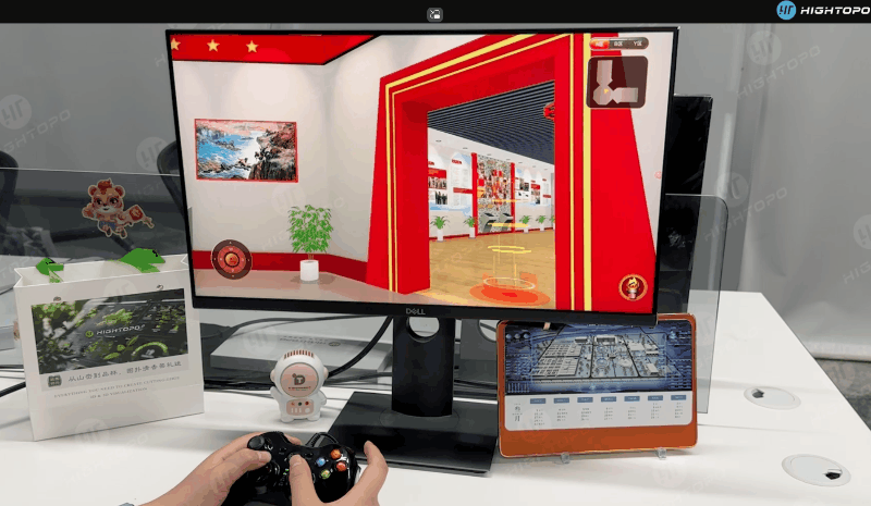 在智慧展馆中,手柄控制漫游可视化是一种创新的互动方式,通过手持设备(如 VR 手柄或游戏控制器等),让观众能够在虚拟展厅中自由探索和互动。这种方式结合了物理操控与数字展览技术,为观众提供了一种新的沉浸体验。