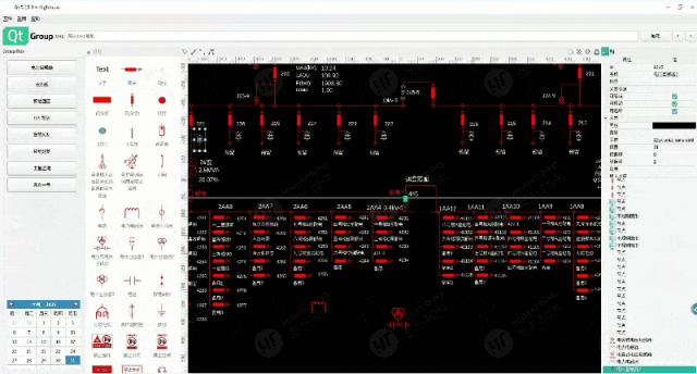 应用层基于 Qt 5.15 框架,采用 QWidget 与 Qt Graphics View 架构,自主开发了一套高性能、高可定制的桌面级组态界面系统。融合 Qt 绘图引擎、景嘉微 GPU 硬件优势与 HT for Web 图形引擎性能,实现数万级图元流畅渲染与平滑缩放,单个界面可承载数万级图元并保持流畅交互。