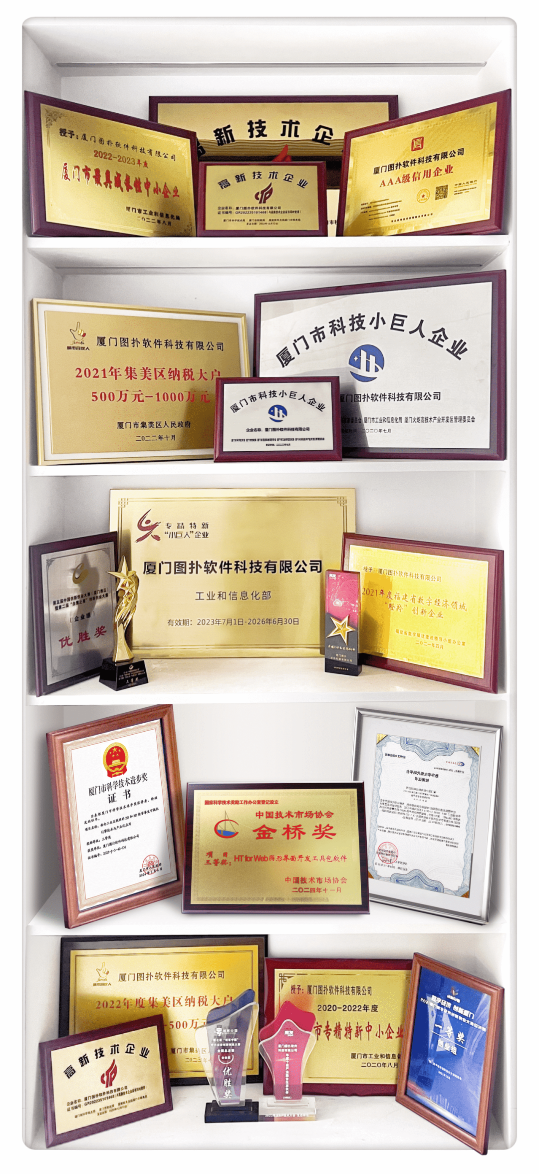 图扑软件历经十余载的持续研发沉淀,凭借自研产品 HT 优势,在自有领域中建立了强大的品牌影响力,用实际行动践行行业领军者的担当和使命。图扑曾先后荣获:
