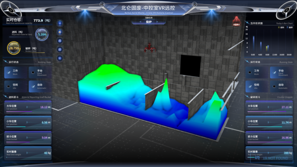 安全层面,通过 VR 远程操作规避人工直接接触危废场景,结合虚拟围栏与故障预警系统,降低设备碰撞、物料泄漏等风险,提升安全防护水平;效率层面,依托实时数据监控与自动化动画功能,减少人工巡检工作量,缩短设备故障响应时间,提升作业调度效率,实现运维全流程高效运转。HT 一体化监控方式为固废处理行业树立新标杆,推动行业运维转型并为同类设备数字化升级提供可复制经验。