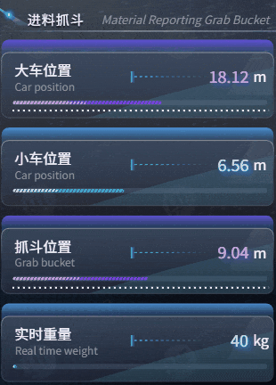 • 行车吊:支持抓斗精准升降与水平移动,可切换手动控制与真实数据驱动作业模式,兼顾功能演示与真实作业展示需求。