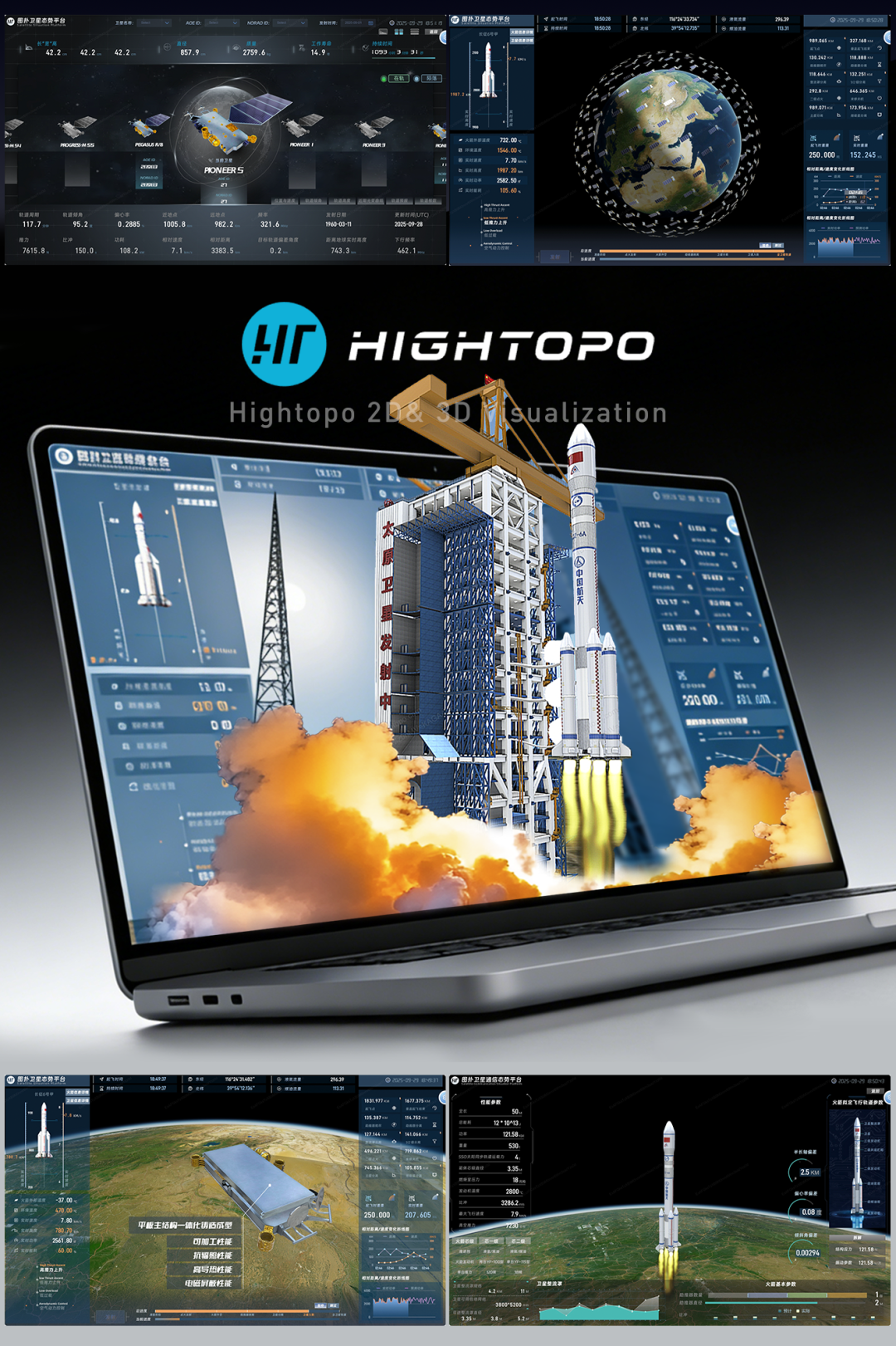 依托图扑 HT 平台搭建的卫星态势管理平台,通过火箭发射全流程动态追踪与模拟推演、在轨卫星多维度运行参数可视化呈现、轨道资源智能化管控等核心功能,构建起清晰直观的一体化数字化管控场景,不仅提升了星链发射后的运维效率,更推动航天领域实现从“数据化记录”向“可视化管控、智能化决策”的跨越式转型。