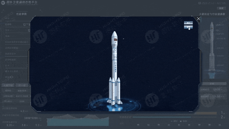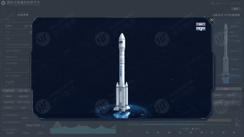 为进一步深化发射流程的可视化管控维度,依托图扑 HT 平台的三维建模与数据集成能力,结合北斗卫星定位数据、GIS 地理信息系统,高精度还原火箭实体结构、复现太空环境,聚焦火箭全维度信息的可视化展示与交互操作,适配技术研发、运维保障、指挥决策等不同岗位的查看需求,为航天任务全周期提供精准的技术数据支撑。