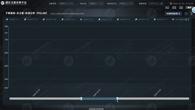 为满足多样化浏览与操作需求,平台配备卡片式、表格式、图表式等多维信息查看模式,支持一键轨道清空、实时刷新、表格下载、时间轴时间段选取等便捷操作;同时拓展卫星轨道预报、近期光变曲线查询等核心功能,进一步完善在轨卫星管控的数据支撑能力。依托 HT for WebGIS 地理信息系统,平台还支持二三维视图“一键切换”,实现卫星轨迹模拟的多维度可视化呈现,为相关工作人员提供直观、便捷的操作体验。