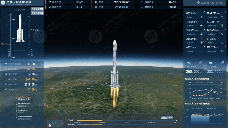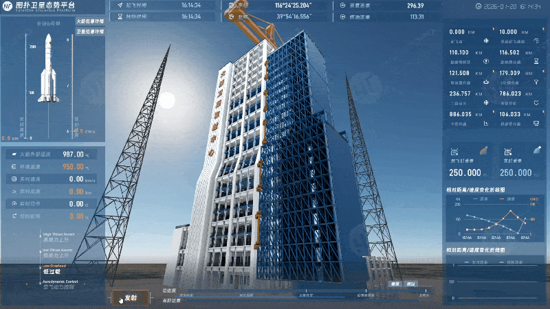 平台以此完整呈现“准备-点火-升空-分离-入轨”的发射全流程闭环,实现航天任务的可视化全链路管控。